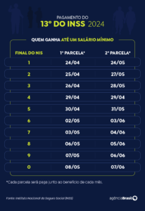 Os segurados com benefício com dígito final 1 e que ganham até um salário mínimo vigente (R$1.412) serão os primeiros a receber e, assim, por dia diante. Para consultar, basta