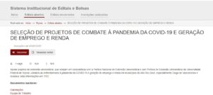 Propostas para edital de enfrentamento à pandemia e geração de emprego e renda devem ser enviadas até dia 7