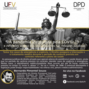 Dando continuidade às atividades do projeto de extensão A pandemia instaurada pela Covid-19 e reflexões acerca de seus impactos nas relações jurídicas, desenvolvido pelo Departamento de Direito (DPD), nesta quinta-feira (14),