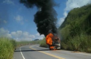 Na manhã dessa terça-feira (12), uma Kombi com trabalhadores pegou fogo na estrada que liga a Coimbra. Os passageiros, que trabalhavam em uma granja, estavam indo para o trabalho. Nenhum