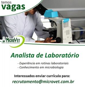 A Microvet divulgou uma vaga de emprego para Analista de Laboratório. Para a vaga é preciso ter experiência em rotinas laboratoriais e conhecimento em microbiologia. Os interessados deverão enviar o