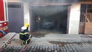 Nesse domingo (26), um carro pegou fogo em uma garagem na rua José Maria, no bairro de Fátima em Viçosa. Os bombeiros estiveram no local e contiveram um incêndio em