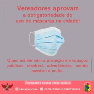 Câmara aprova a obrigatoriedade do uso de máscaras na cidade