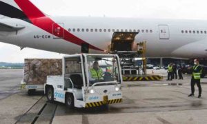 Pousou nesta segunda-feira (30) no Aeroporto Internacional de São Paulo, em Guarulhos, o avião com 500 mil kits de testes rápidos para coronavírus (COVID-19). Os itens, doados pela mineradora Vale, podem checar