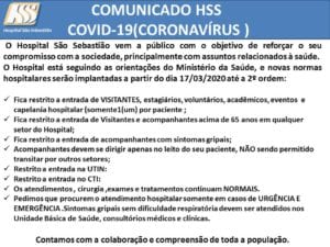 O Hospital São Sebastião seguindo orientações do Ministério da Saúde, instaurou novas normas hospitalares a partir de hoje, dia 17/03/2020 até a 2ª ordem: Fica restrito a entrada de VISITANTES,