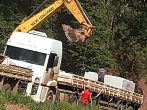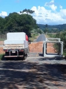 Galerias de concreto chegaram na manhã dessa quarta-feira (18), nos desvios que estão sendo construídos na BR-356 entre Ervália e Coimbra. A rodovia foi interditada, após duas crateras se abrirem na