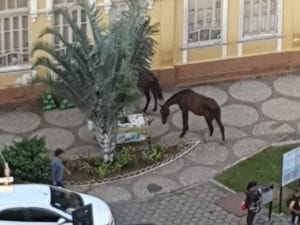 Na tarde dessa quarta (19), os viçosenses que passaram pela Av. Bueno Brandão, próximo a Estação Cultural Hervê Cordovil, no Centro de Viçosa, presenciaram uma cena bastante inusitada: dois cavalos