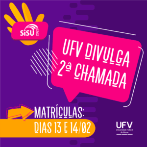 A lista dos selecionados na segunda chamada da UFV no Sisu já está no site dos processos seletivos da Universidade: www.pse.ufv.br. Nos três campi da UFV, a matrícula dessa chamada acontecerá nos dias 13 e