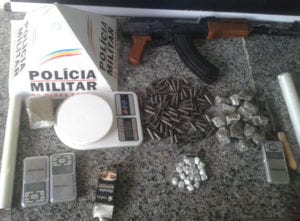 Na tarde dessa terça (14), por volta das 15h45, YJSV, de 19 anos, foi preso com uma réplica de um fuzil e com drogas na Rua Abdo Zaharam, no Bom