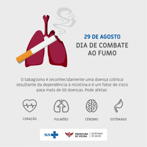 Hoje, dia 29 de agosto é o Dia Nacional de Combate ao Fumo. Em Viçosa, a Secretaria de Saúde preparou uma mobilização para divulgar o Programa de Combate ao Tabagismo,