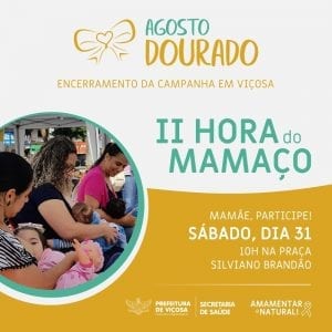 Neste sábado (31), em comemoração ao encerramento do Agosto Dourado, será realizado em Viçosa a II Hora do Mamaço. Participe! Será neste sábado, 31 de agosto, às 10h, na Praça