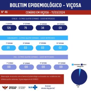 Desde o início deste ano até o dia 11 de março, foram notificados 468 casos de dengue em Viçosa. Destes, 211 foram confirmados, 28 descartados e 229 ainda estão em