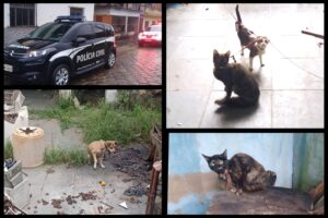 Durante a ocorrência, os policiais encontraram cães e gatos em condições de abandono, acorrentados e cercados por fezes. Na última sexta-feira (8/3), a Polícia Civil de Teixeiras prendeu em flagrante
