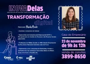 Voltado para mulheres que já empreendem ou que desejam empreender, a CME Viçosa e o Sebrae Minas realizam, no dia 23 de novembro, às 9h na Casa do Empresário, o