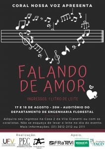 O show acontecerá nos dia 17 e 18 de agosto às 20 horas no Auditório do Departamento de Engenharia Florestal. Este evento fará parte das comemorações do 93º Aniversário da