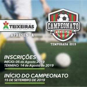 INSCRIÇÕES ABERTAS PARA A TEMPORADA 2019 DO CAMPEONATO MUNICIPAL DE FUTEBOL DE TEIXEIRAS
