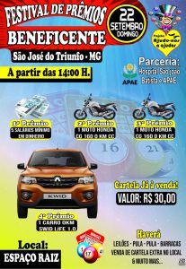 No dia 22 de setembro, a partir das 14h, será realizado no Espaço Raiz em São José do Triunfo, um festival de prêmios beneficente ao Hospital São João Batista e