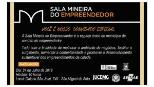 Às 10:00h da manhã, na próxima quarta-feira (24/07), vai ocorrer a inauguração da Sala Mineira do Empreendedor do nosso município. A própria está situada na galeria São José, localizada na