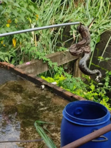 Uma jiboia foi encontrada na Rua Eurides Moreira do Prado, no Bairro Santo Antônio em Muriaé. Na manhã da última sexta-feira (1), um homem limpava o terreno atrás de sua