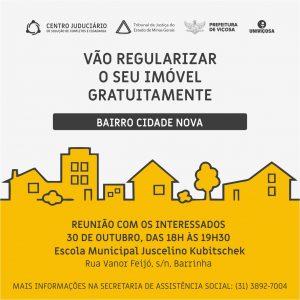 A Prefeitura de Viçosa; o Centro Judiciário de Solução de Conflitos e Cidadania (CEJUSC); o Tribunal de Justiça de Minas Gerais e a Univiçosa, juntos, realizarão a regularização fundiária no