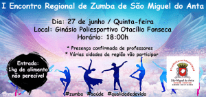 No dia dia 27 de junho (quinta-feira), às 18:00h, será realizado o I Encontro Regional de Zumba de São Miguel do Anta. O encontro será no Ginásio Poliesportivo Otacílio Fonseca