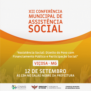 A Secretaria de Assistência Social realizará, na próxima quinta-feira (12), a XII Conferência Municipal da Assistência Social, com o tema Assistência Social: Direito do Povo com Financiamento Público e Participação Social.
