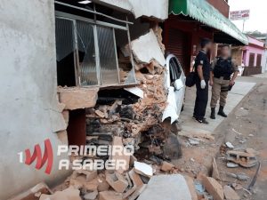 Na tarde desse domingo (20), um motorista bateu com um carro em uma casa na Avenida Barão do Rio Branco, no bairro Patrimônio, em Teixeiras. Segundo a polícia, o condutor