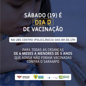 O município de Viçosa realiza neste sábado (19) o Dia ‘D’ Contra o Sarampo. A ação faz parte da Campanha Nacional de Vacinação, lançada no dia 7 de outubro pelo