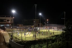 Um lote abandonado na entrada do bairro Novo Silvestre foi transformado em praça, com parquinho e campo de futebol. O novo espaço foi inaugurado nesta quinta-feira (25) e a cerimônia
