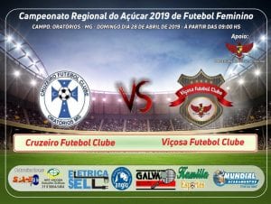 Neste domingo, dia 28/04, a partir das 9h, o Viçosa Futebol Clube joga no Campeonato Regional do Açúcar 2019 de Futebol Feminino no Campo da cidade de Oratórios. O jogo