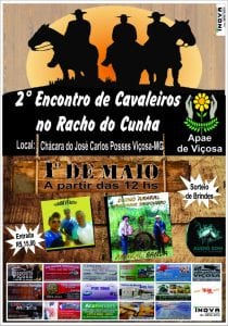 Será realizado o 2° Encontro de Cavaleiros no Rancho do Cunha. O evento acontecerá no dia 01 de maio a partir das 12h na Chácara do José Carlos nas Posses