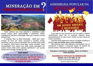ASSEMBLEIA POPULAR IRÁ DEBATER MINERAÇÃO EM TEIXEIRAS E PEDRA DO ANTA