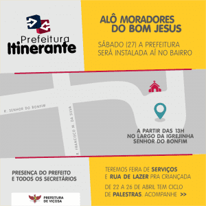 Começam nesta segunda-feira (22) as ações do projeto Prefeitura Itinerante no bairro Bom Jesus. O projeto, criado em 2015, retoma suas atividades com o objetivo de aproximar a gestão pública da