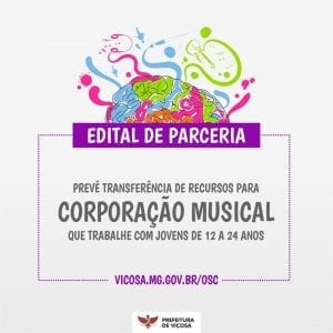 A Prefeitura de Viçosa, está com edital aberto para formalização de parceria com entidade que promova o desenvolvimento musical, social e emocional de jovens de 12 a 24 anos através