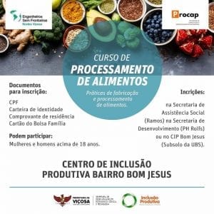 INSCRIÇÕES ABERTAS PARA CURSO GRATUITO DE PRODUÇÃO DE ALIMENTOS