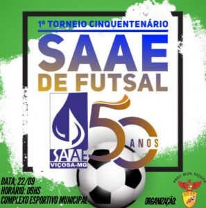 Em comemoração aos 50 anos do SAAE, a Secretaria de Cultura, Patrimônio Histórico e Esportes, por meio do Departamento de Esportes e Lazer, está promovendo o 1° Torneio Cinquentenário SAAE