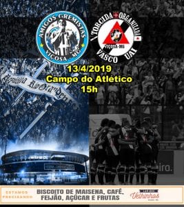 Nesse sábado, dia 13/04, acontecerá um amistoso beneficente ao Lar dos Velhinhos. O jogo será entre Amigos Gremistas Viçosa x Torcida Organizada Vasco Uai Viçosa no Campo do Atlético às
