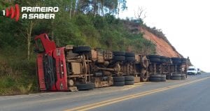 Na manhã de hoje, dia 15 de junho, por volta das 7h30, uma carreta carregada de soja tombou próximo ao Feijão Pereira, no trevo de Cajuri. Entramos em contato com