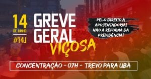 Nesta sexta-feira, 14 de junho, amanhã, é um dia de Greve Geral em todo o país, e Viçosa também participará da mobilização. Segundo a organização da ação, inicialmente, a mobilização