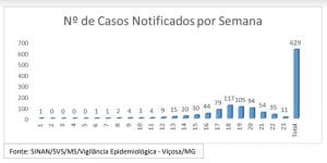 VIÇOSA DIMINUI NOTIFICAÇÕES DE DENGUE AO LONGO DAS SEMANAS, MAS 293 CASOS JÁ FORAM CONFIRMADOS