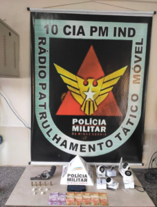 A Polícia Militar efetuou a prisão de um indivíduo por tráfico de drogas, porte de arma e furto de energia. A operação ocorreu na Avenida Vicentina Quintão de Barros, bairro
