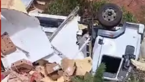 MGC-265: caminhão tomba de ribanceira de seis metros de altura