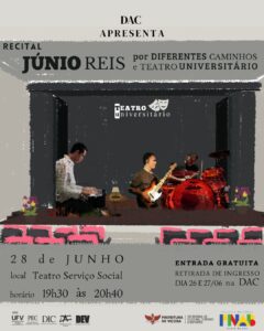 O recital é uma realização da Política Nacional Aldir Blanc em parceria com a DAC, da Pró-Reitoria de Extensão e Cultura. A Divisão de Arte e Cultura (DAC) apresenta neste sábado (28), às