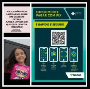 Marcelo em um vídeo enviado à redação solicita ajuda através de um “pix solidário” para custear as despesas relacionadas a deslocamentos. Lavínia Freitas de Oliveira e Souza, de 10 anos,