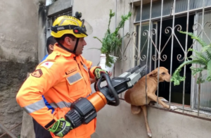 Zona da Mata: cachorro fica preso em grade de janela e mobiliza bombeiros