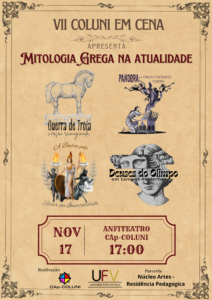 A sétima edição do Coluni em Cena acontece nesta sexta-feira (17), às 17h, no anfiteatro do Colégio de Aplicação (CAp-Coluni). A temática da vez é Mitologia grega na atualidade. Na apresentação, os alunos explorarão peças