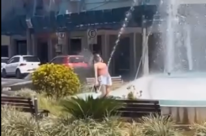 Ponte Nova: mulher é flagrada se refrescando em chafariz