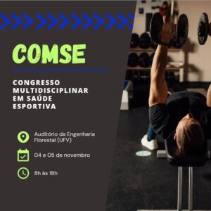 O Congresso Multidisciplinar em Saúde Esportiva da UFV (Comse) está com inscrições abertas. O evento acontecerá nos dias 4 e 5 de novembro, no auditório do Departamento de Engenharia Florestal,