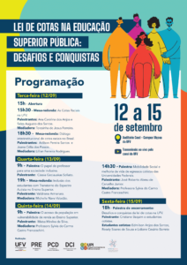 O evento debaterá sobre desafios e conquistas; interessados em participar devem se inscrever via formulário virtual. A UFV promoverá o evento Lei de Cotas no Ensino Superior Público: desafios e conquistas, entre