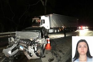 Segundo a polícia, a condutora do carro de passeio invadiu a contramão da rodovia e colidiu frontalmente com uma carreta que seguia no sentido contrário. Uma tragédia marcou a noite